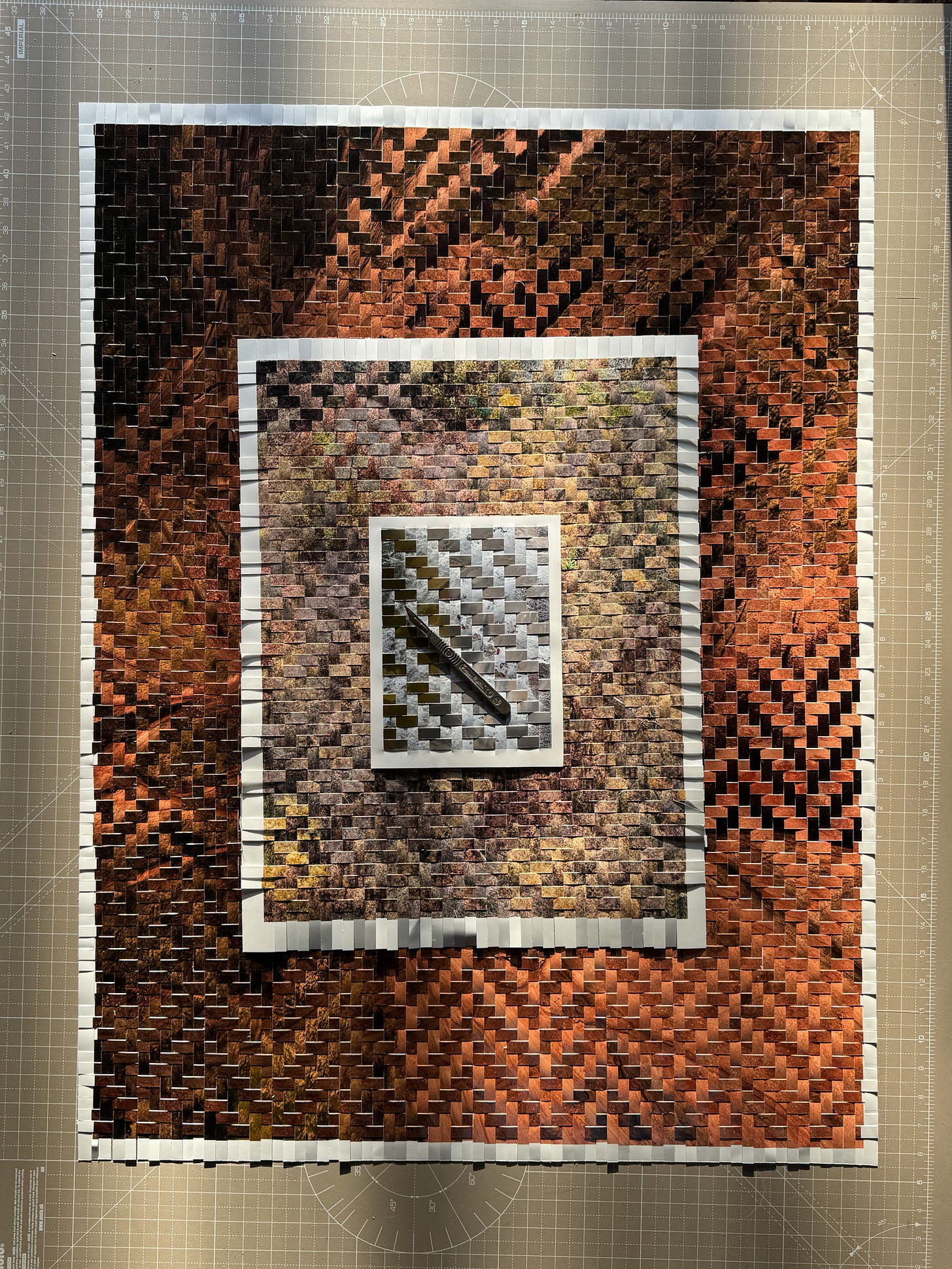 The three sizes chart the evolution of the technique from small study weaves, where images and weaves are paired, to the largest exhibition print. The medium weave is for part 5 of this series (Romance) and the study weave is for part 6 (Recreate). More on them later.