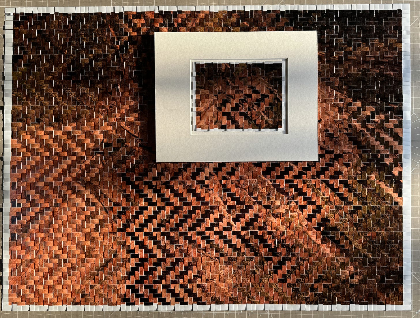 Fabricated Land is an ongoing body of work composed of photoweaves of abstract aerial imagery. Each weave tells hidden stories of the past’s influence on the present.