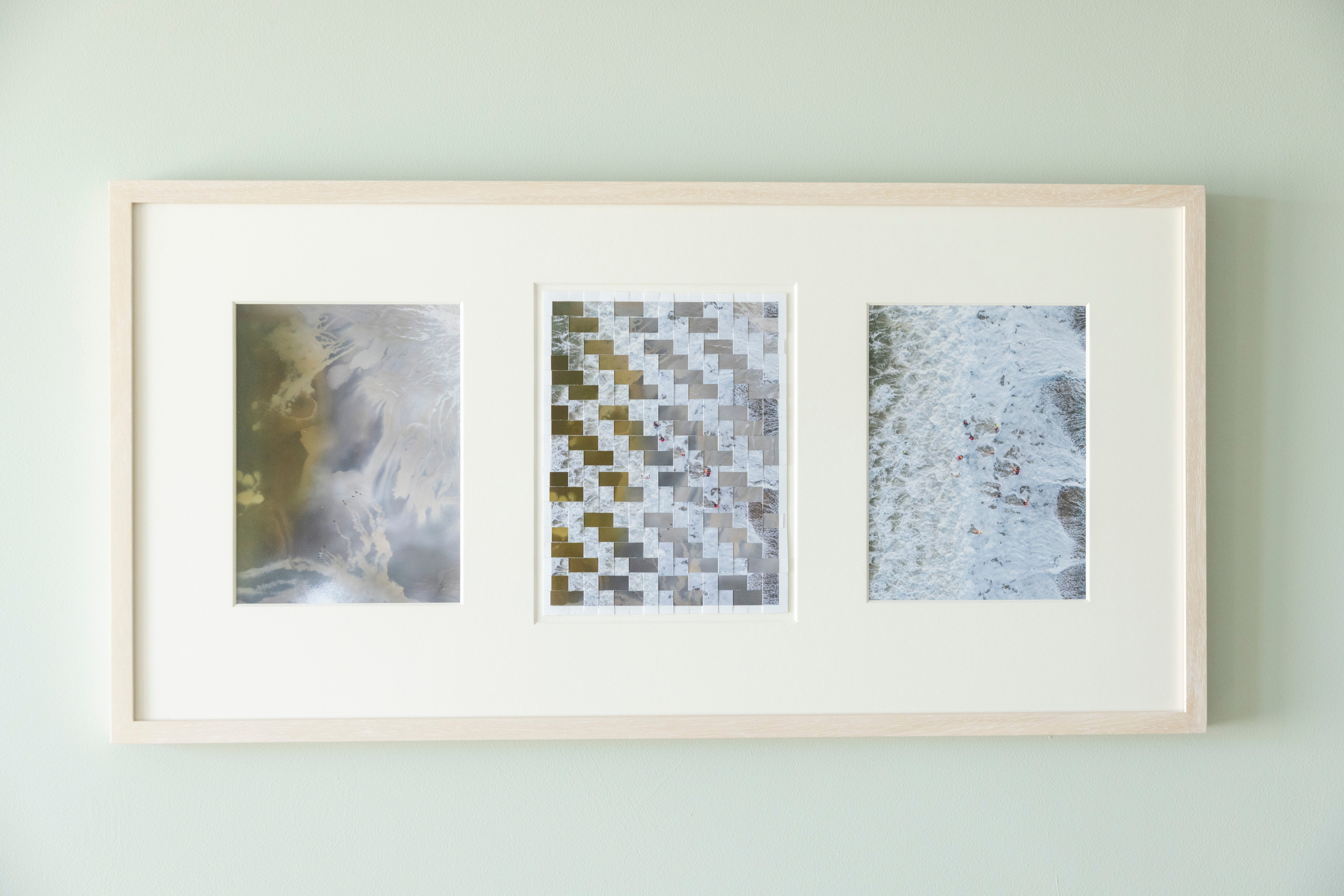 After my initial experiments, I was commissioned by an individual collector to create a framed triptych including both source images and the study weave. I love this new form and I will do more. If you are interested in this please get in touch. Each framed print comes with the stories behind the prints.