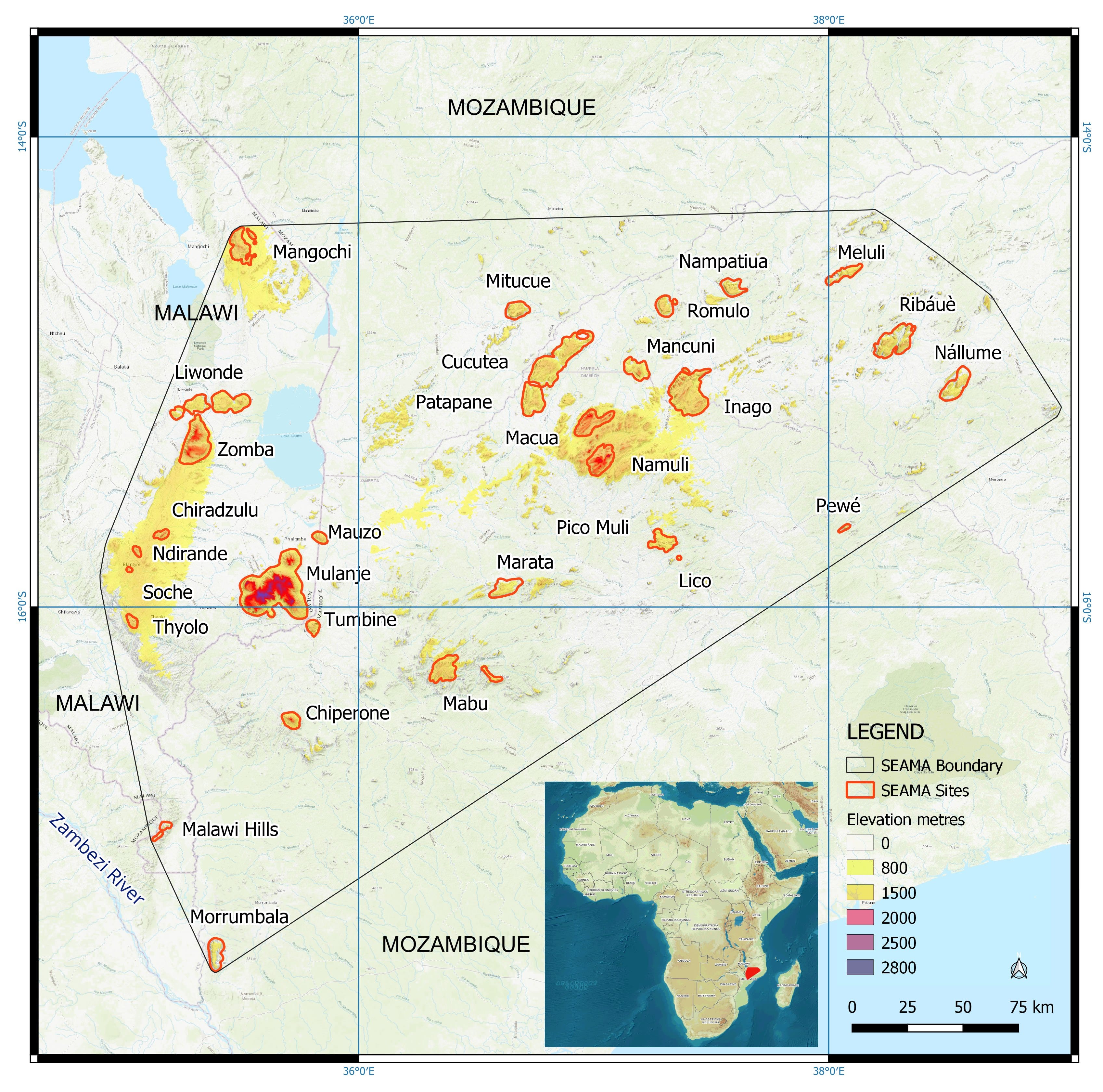 Map taken from A biogeographical appraisal of the threatened South East Africa Montane Archipelago ecoregion, Bayliss et al 2024.