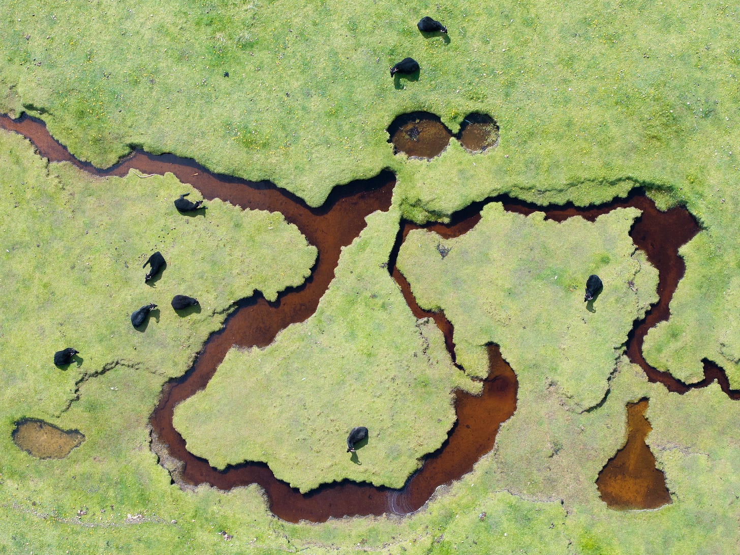 The challenge for this shot was capturing the sheep from above with enough clarity to show that they are sheep (or at least animals), while also celebrating the way they look like dark pools of water on the grass. I love the way they form part of the landscape.